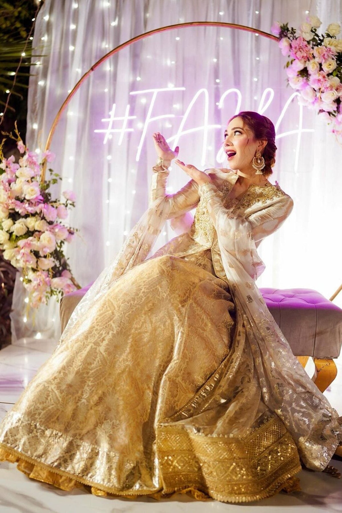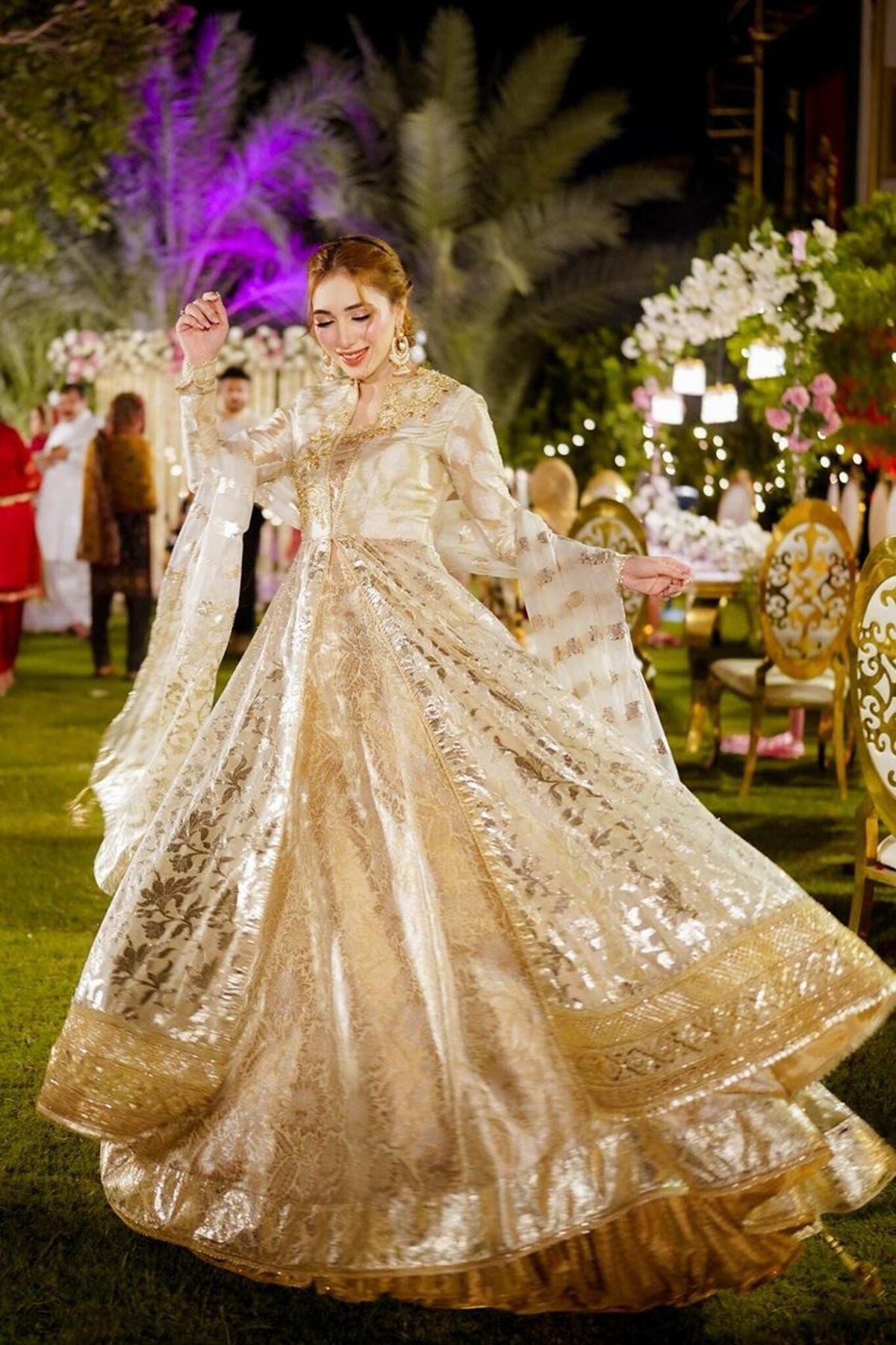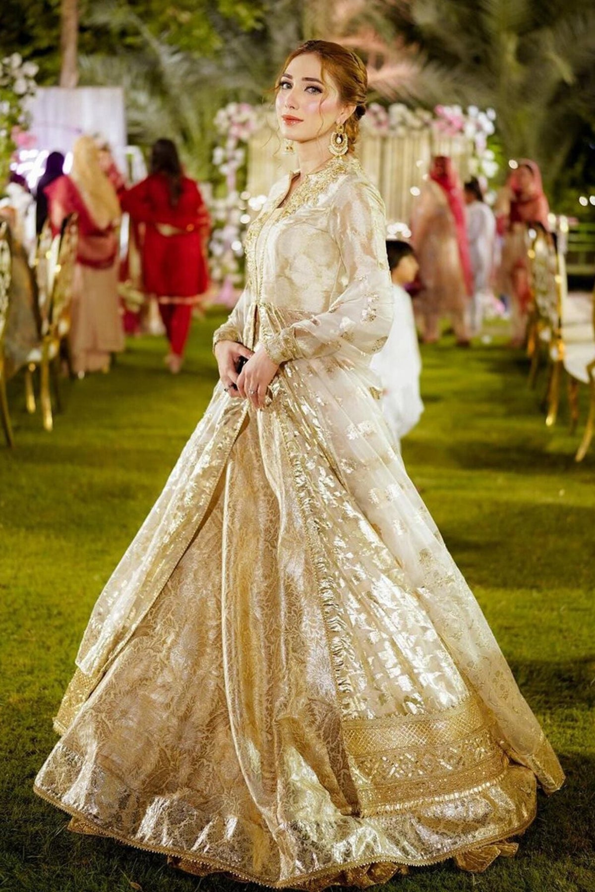 A wondrous testament to sophistication and class, ‘Noor’s Symphony’ stands out as the definitive showstopper for this festive season. An impeccably elegant silhouette is adorned with intricate hand-work on pristine tinsel organza. The bodice, a radiant rose gold self-tissue, elevates the allure of this delectable design. This timeless ensemble reaches its zenith with a flared kimkhaab lehnga, paired harmoniously with a tinsel organza dupatta, together weaving a captivating, spellbinding aura